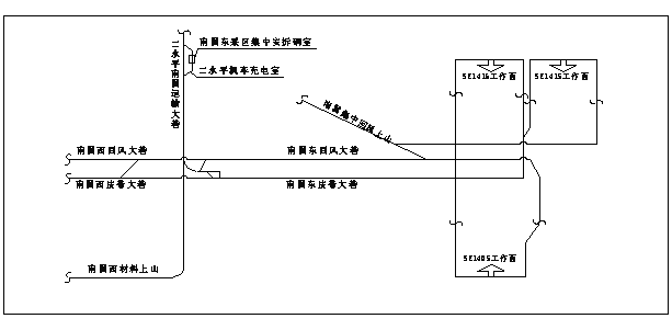 圖2? 二水平南翼東采區(qū)集中安拆峒室布置示意圖