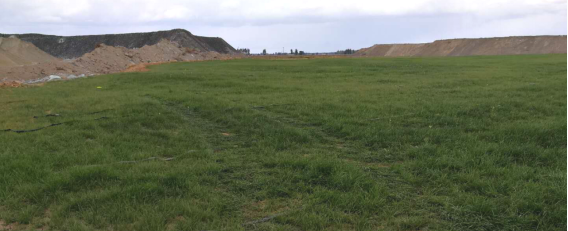 該項目儲灰場完工部分已覆土綠化,一號沉坑正在逐步進行回填。施工現(xiàn)場對一號沉坑臨時堆存的粉煤灰進行苫蓋,并采取灑水、噴霧降塵措施, 2臺灑水車、1臺移動式噴霧機持續(xù)灑水作業(yè),防治揚塵效果有所改善。