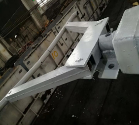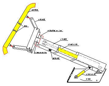 兩側(cè)回轉(zhuǎn)臂經(jīng)過(guò)改造屬于人工仿生機(jī)械方式,外形如同人體的胳膊;兩側(cè)帶固定銷(xiāo)防止切割巷道時(shí)刮碰人員及兩幫,旋轉(zhuǎn)伸出時(shí)保證支護(hù)裝置可達(dá)到一定的支護(hù)高度,收回時(shí)又能最大限度減小體積。