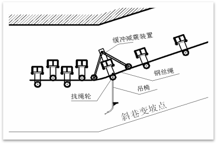 4、變坡點處增設了緩沖減震裝置。乘坐人員經(jīng)過變坡點時時無明顯震動感覺,通過順暢,鋼絲繩抖動現(xiàn)象消失,提高了乘坐舒適性和安全性。.