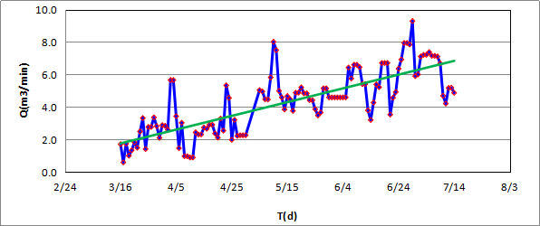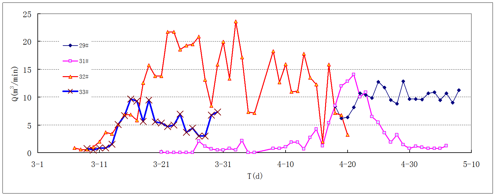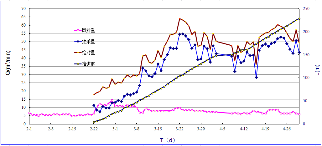 圖3??斜交鉆孔抽采量隨推進(jìn)時間變化曲線