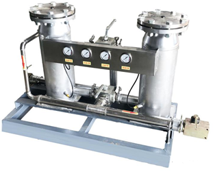 該過(guò)濾站主要是將進(jìn)入到工作面水中的大的顆粒性物質(zhì)進(jìn)行有效的過(guò)濾,過(guò)濾精度達(dá)到100~25um之間,過(guò)濾后的水質(zhì)可滿(mǎn)足噴霧泵、設(shè)備散熱器、液力耦合器及乳化液水處理設(shè)備進(jìn)液水質(zhì)的要求。過(guò)濾站采用不銹鋼濾芯,內(nèi)置超壓泄放裝置,可一用一備,便于濾芯清洗或更換。進(jìn)液口與工作面管路連接,將水供給過(guò)濾組件,濾筒體是過(guò)濾站的核心部分,采用多級(jí)過(guò)濾方式,根據(jù)用戶(hù)需求,可配置過(guò)濾精度100~25μm的濾芯。通過(guò)壓力顯示監(jiān)測(cè)設(shè)備運(yùn)行壓力,判斷運(yùn)行情況,可進(jìn)行手動(dòng)反沖洗。