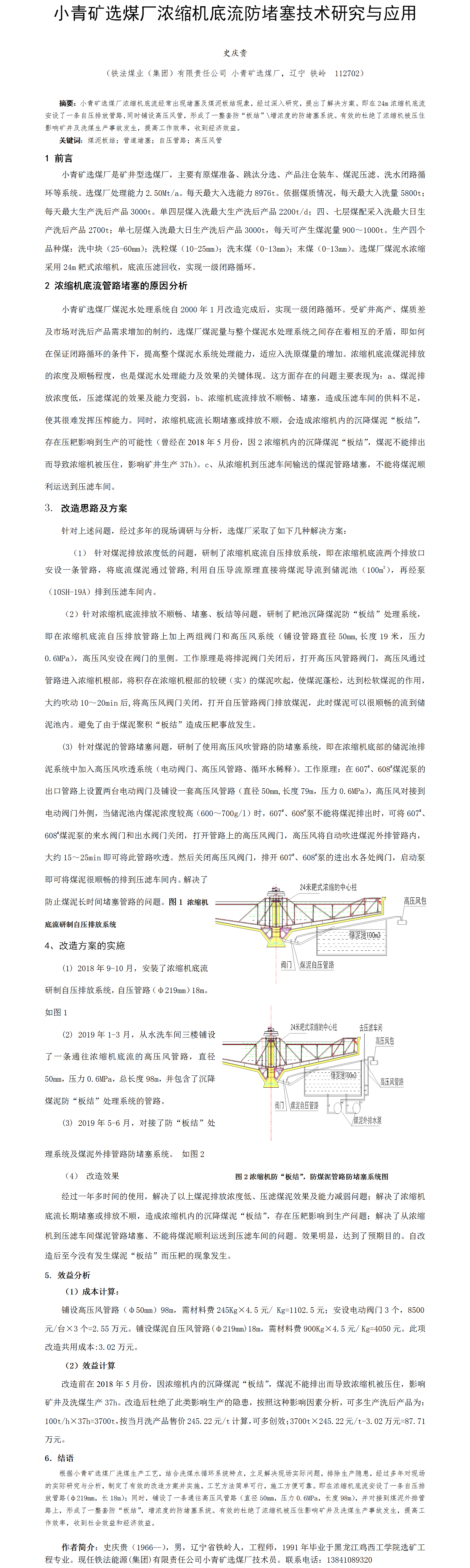 第47屆等級(jí)獎(jiǎng)?wù)撐?--小青礦選煤廠濃縮機(jī)底流防堵塞技術(shù)研究與應(yīng)用