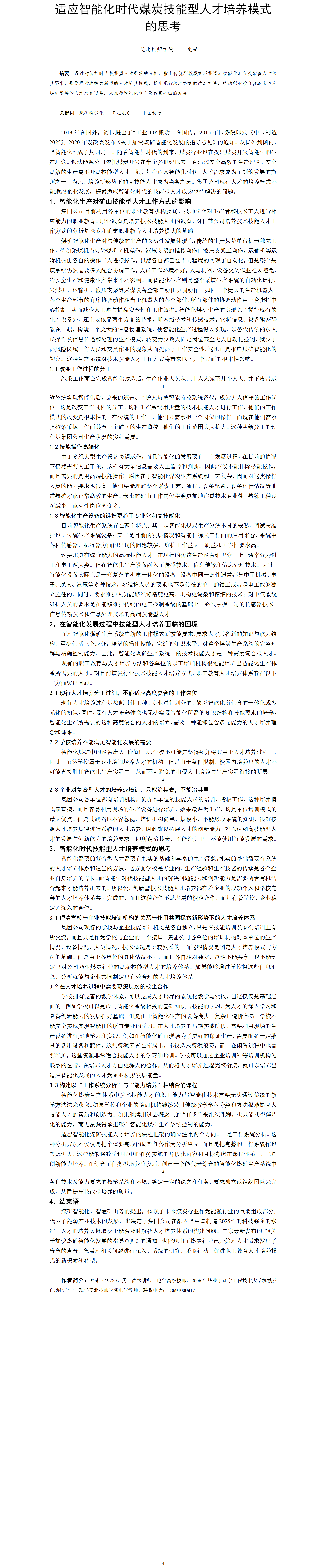 第48屆等級獎?wù)撐?--適應(yīng)智能化時代煤炭技能型人才培養(yǎng)模式的思考