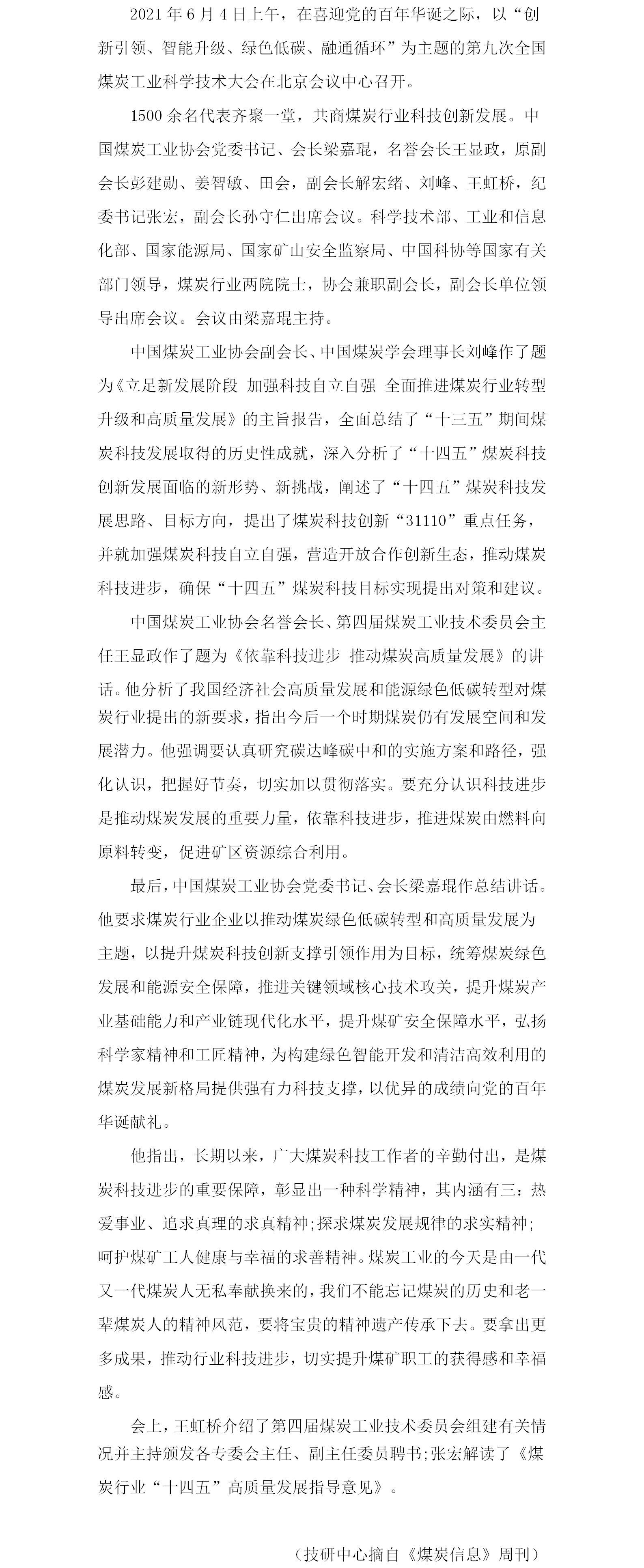 第九次全國煤炭工業(yè)科學(xué)技術(shù)大會召開