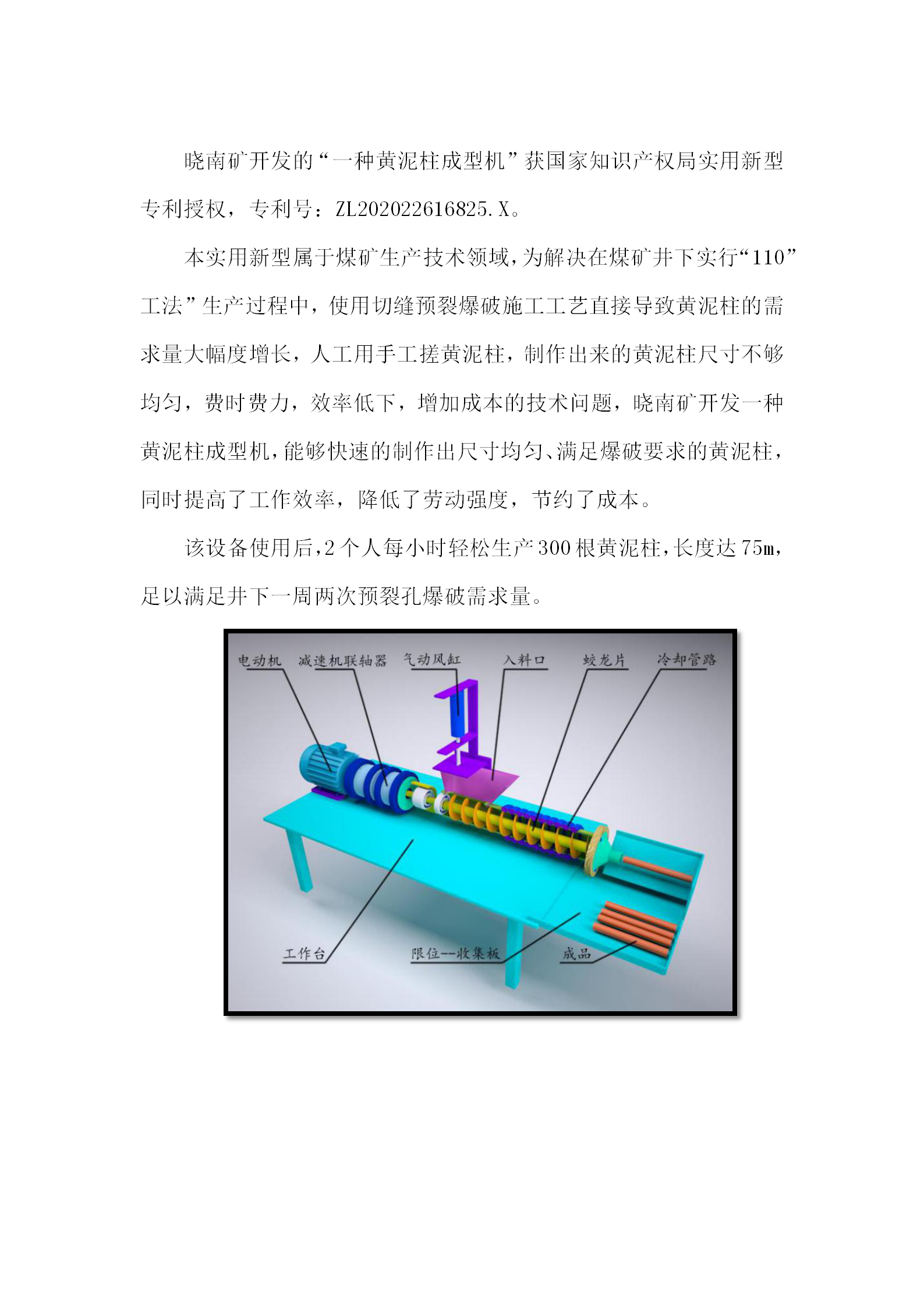 曉南礦獲得一項實用新型專利授權 ——一種黃泥柱成型機