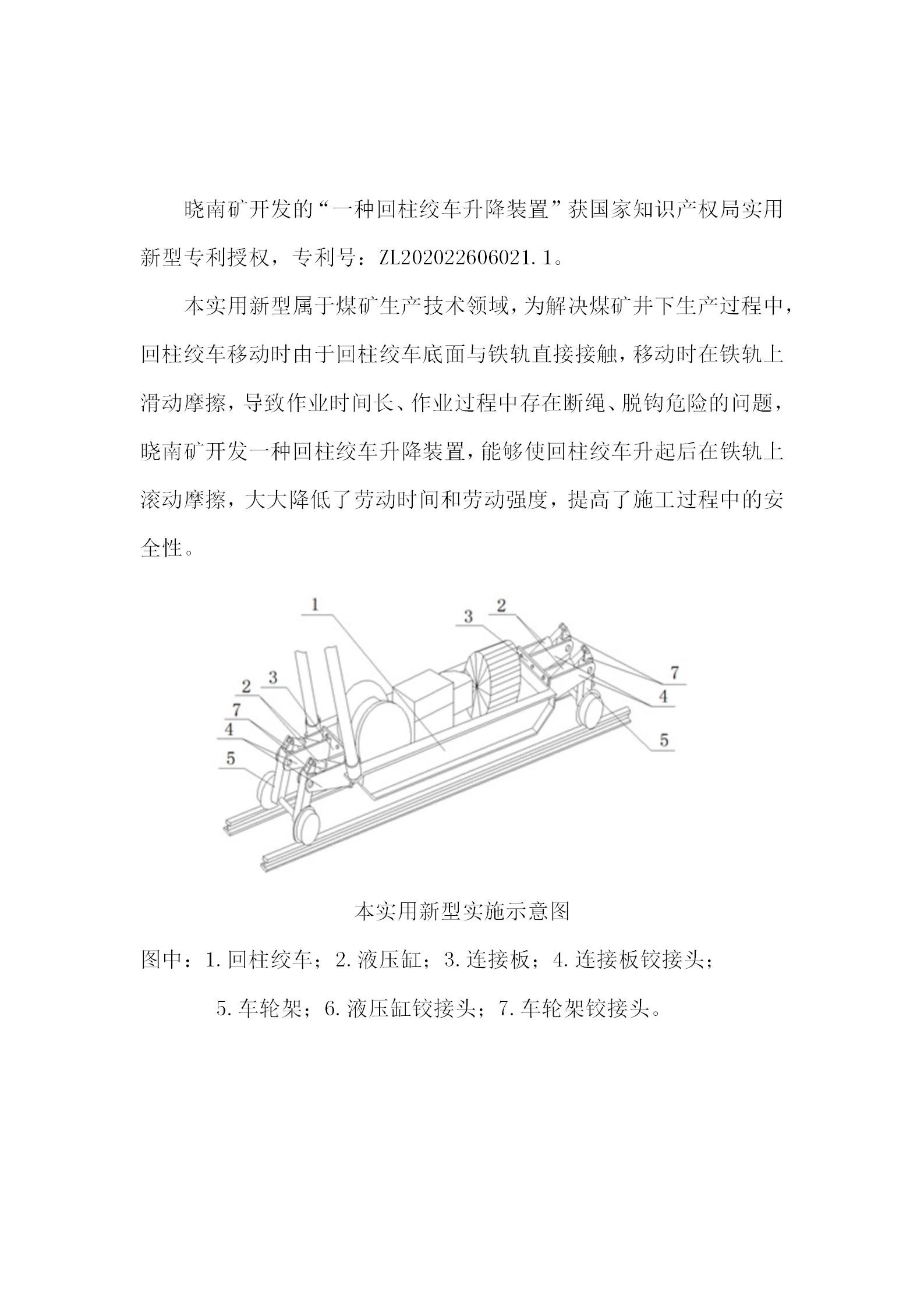曉南礦獲得一項實用新型專利授權 ——一種回柱絞車升降裝置