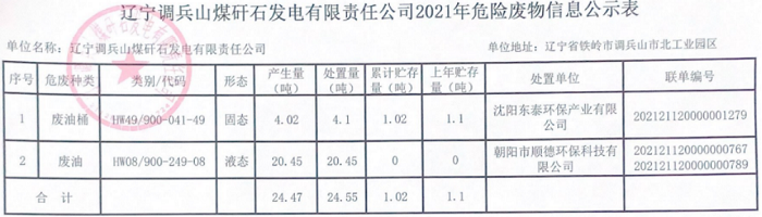 煤矸石發(fā)電公司2021年危險廢物信息公示