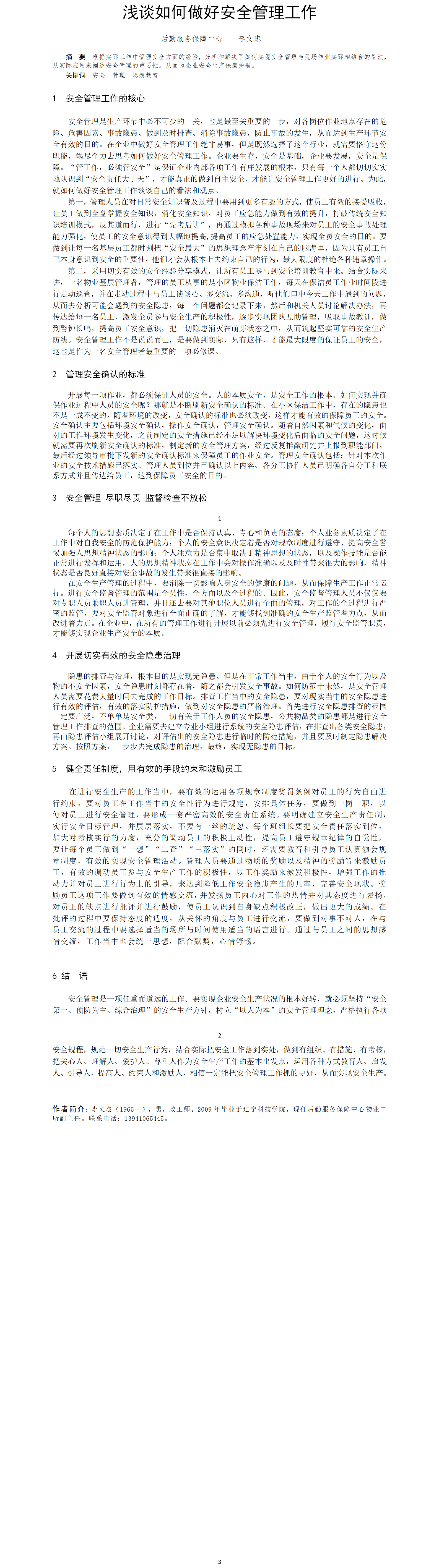 第52屆等級(jí)獎(jiǎng)?wù)撐?--淺談如何做好安全管理工作