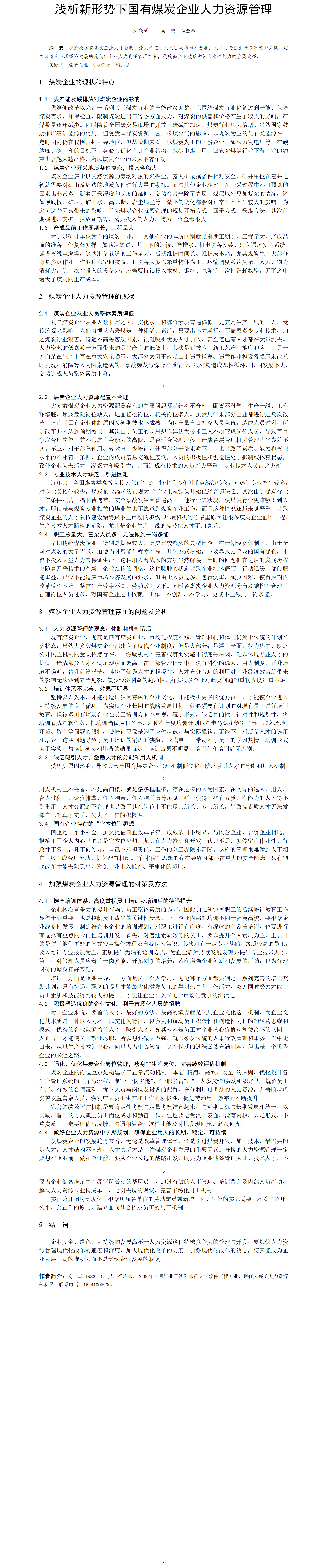 第52屆等級(jí)獎(jiǎng)?wù)撐?--淺析新形勢(shì)下國(guó)有煤炭企業(yè)人力資源管理