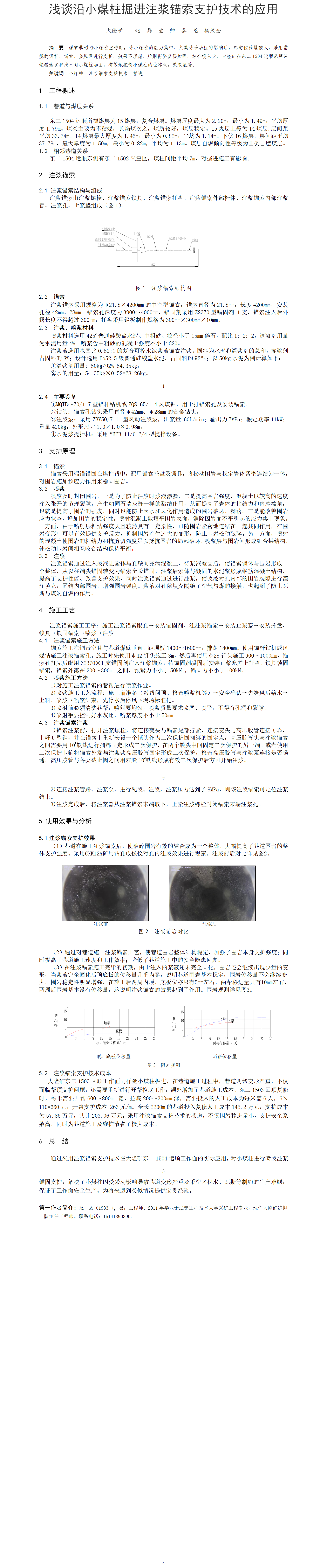 第53屆等級獎?wù)撐?--淺談沿小煤柱掘進注漿錨索支護技術(shù)的應(yīng)用