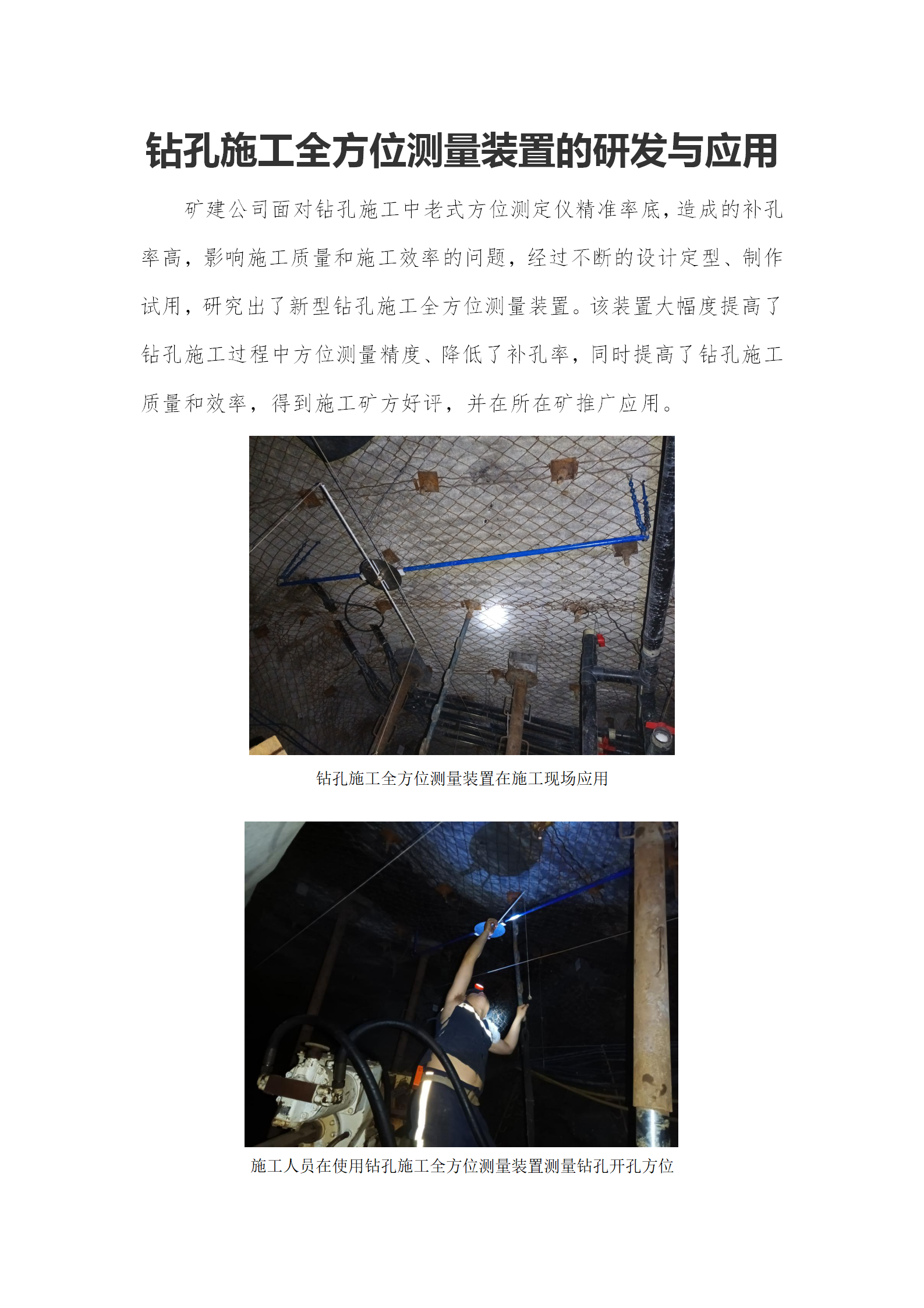 鉆孔施工全方位測量裝置的研發(fā)與應(yīng)用