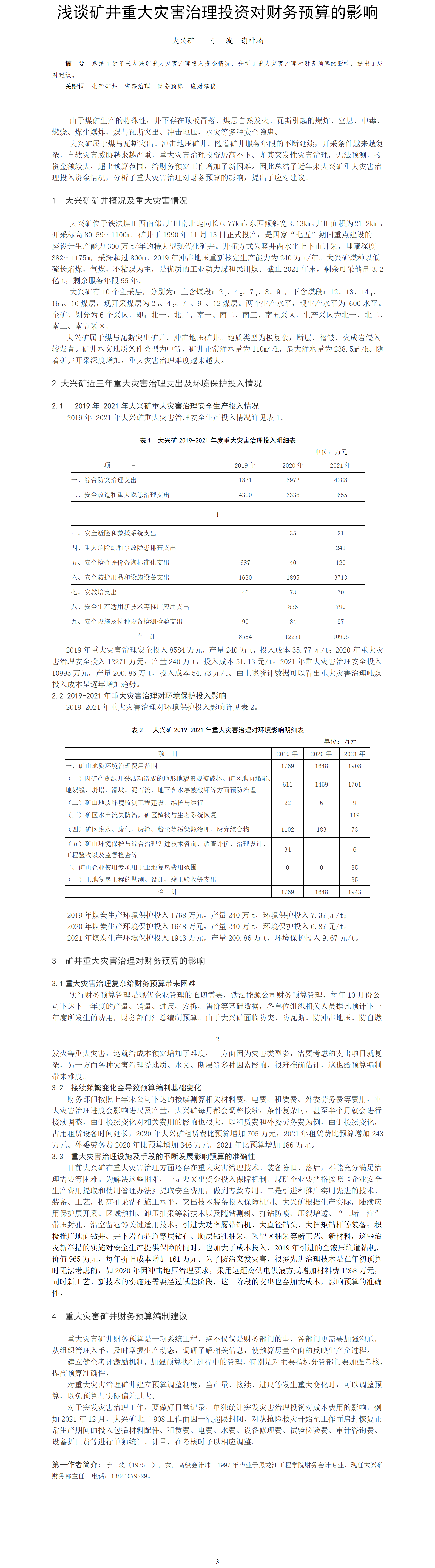 第54屆等級獎?wù)撐?--淺談礦井重大災(zāi)害治理投資對財務(wù)預(yù)算的影響