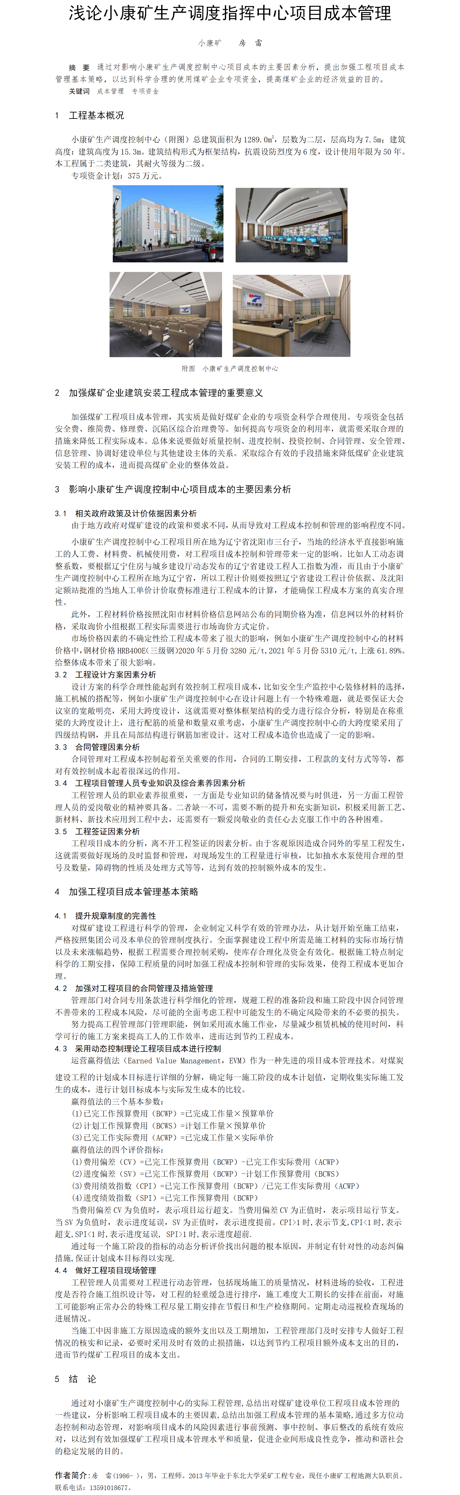 第54屆等級獎論文---淺論小康礦生產(chǎn)調(diào)度指揮中心項目成本管理