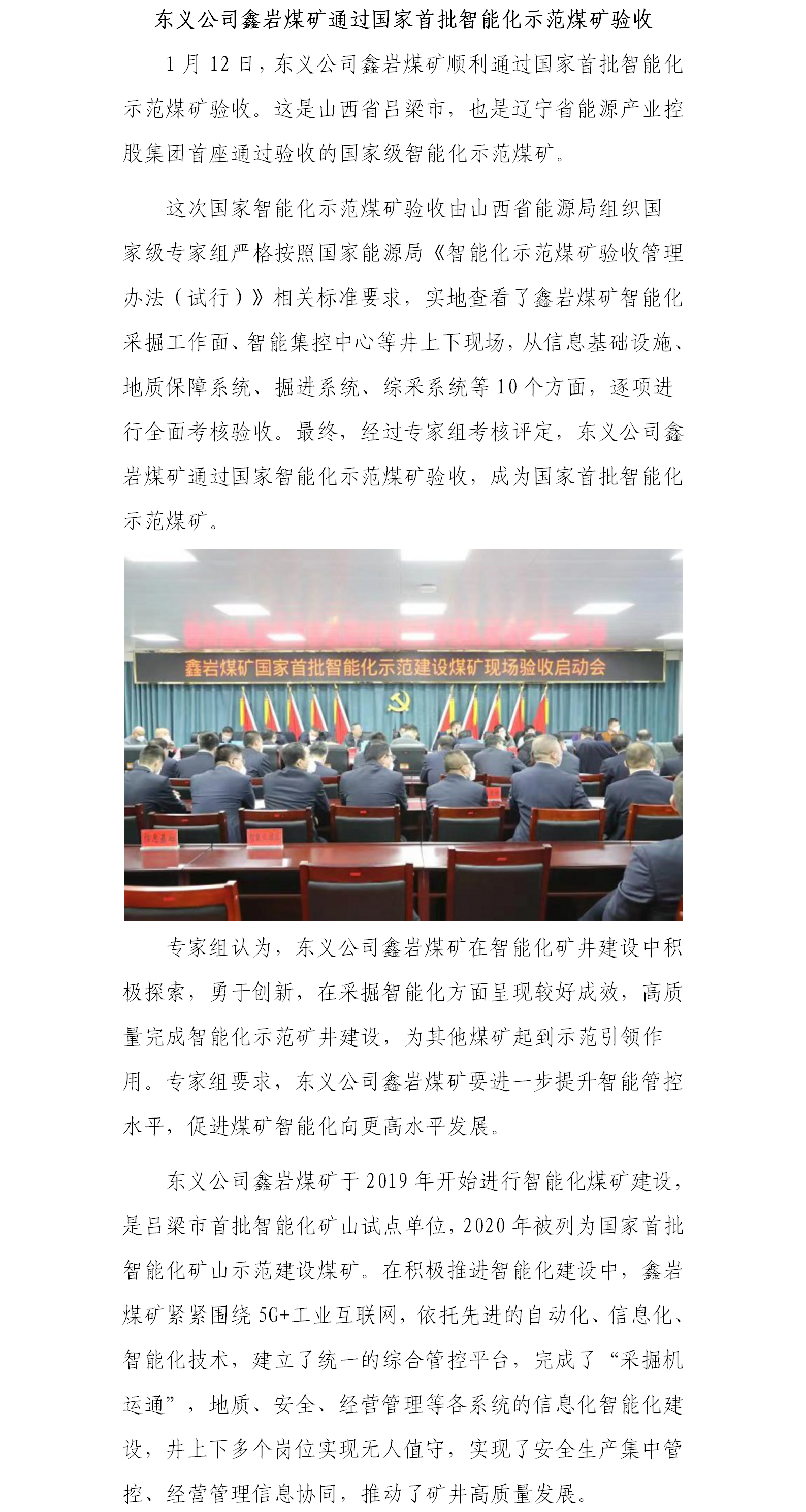 東義公司鑫巖煤礦通過國家首批智能化示范煤礦驗收
