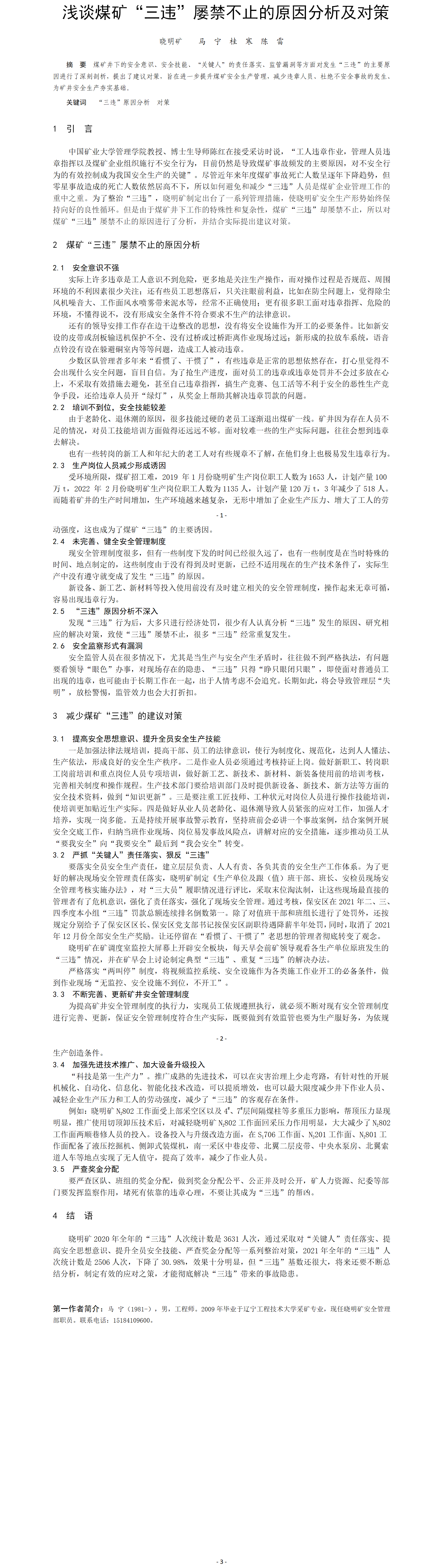 第54屆等級獎?wù)撐?--淺談煤礦“三違”屢禁不止的原因分析及對策