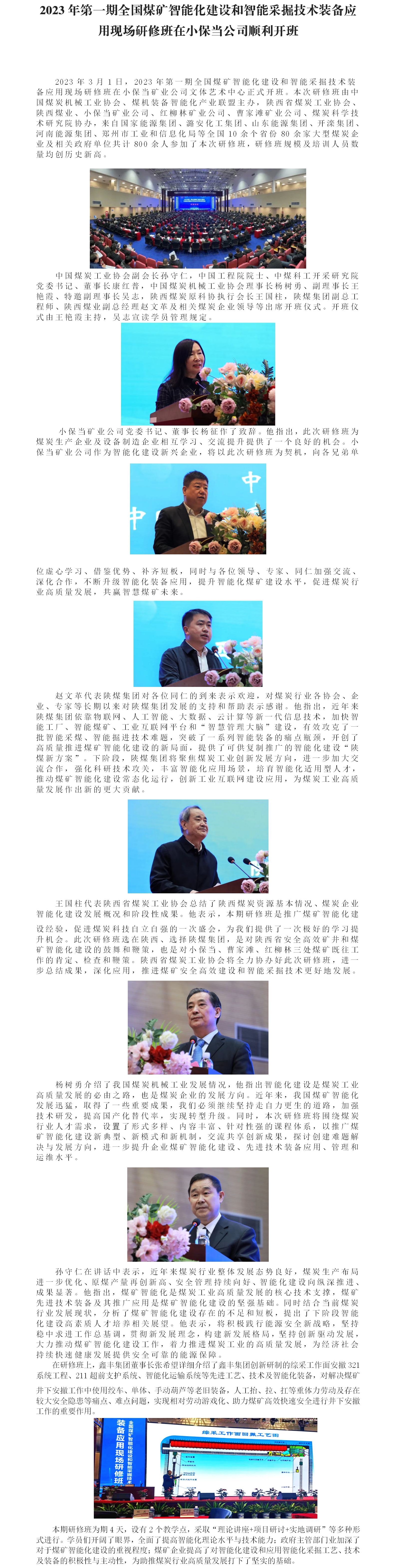 2023年第一期全國煤礦智能化建設(shè)和智能采掘技術(shù)裝備應(yīng)用現(xiàn)場研修班在小保當(dāng)公司順利開班