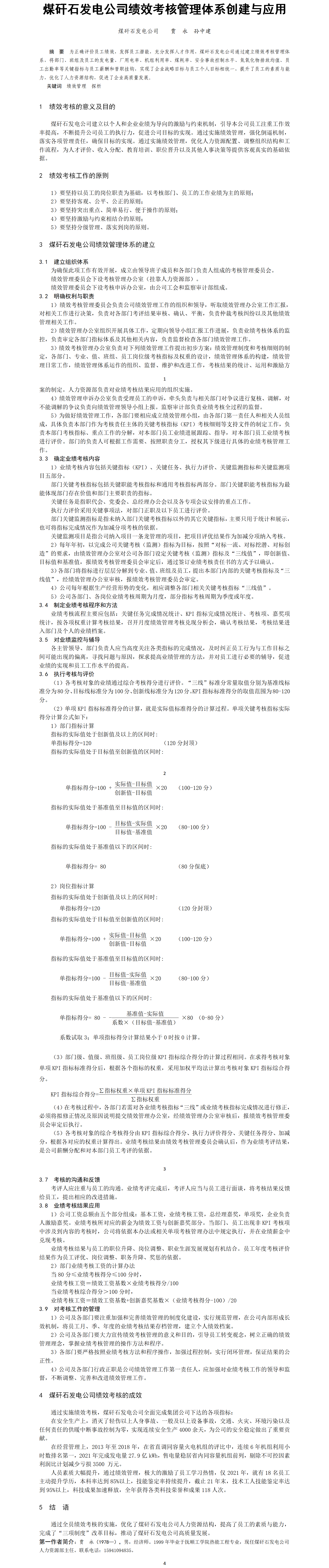 第54屆等級獎?wù)撐?--煤矸石發(fā)電公司績效考核管理體系創(chuàng)建與應(yīng)用