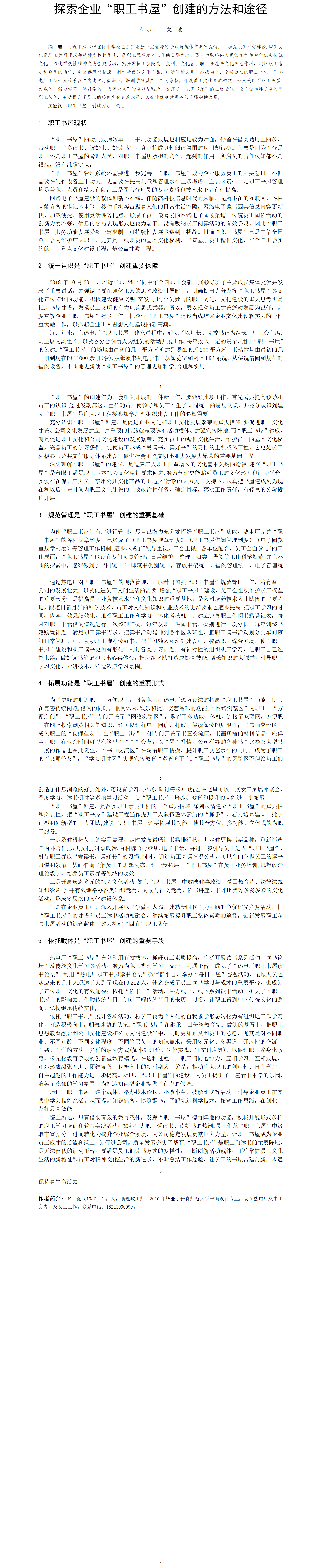 第54屆等級獎?wù)撐?--探索企業(yè)“職工書屋”創(chuàng)建的方法和途徑