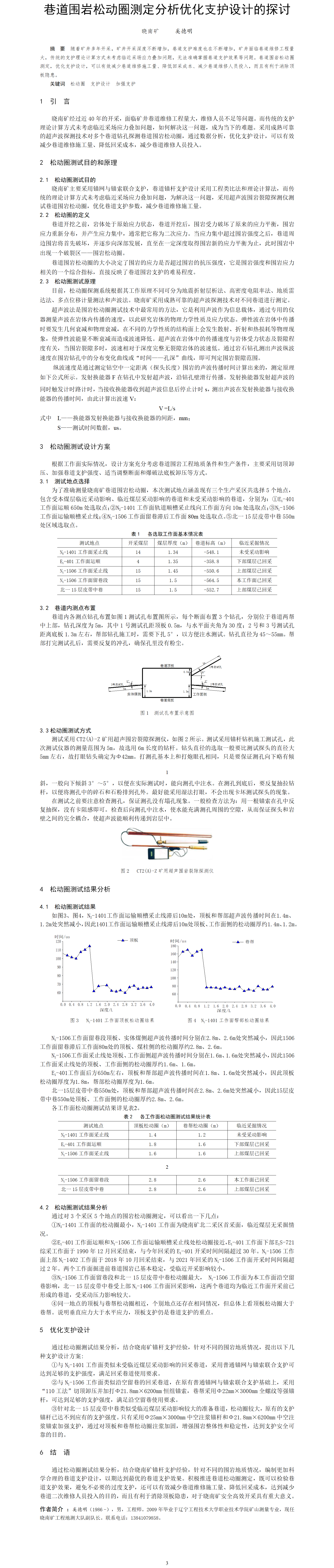 第55屆等級獎?wù)撐?--巷道圍巖松動圈測定分析優(yōu)化支護(hù)設(shè)計的探討