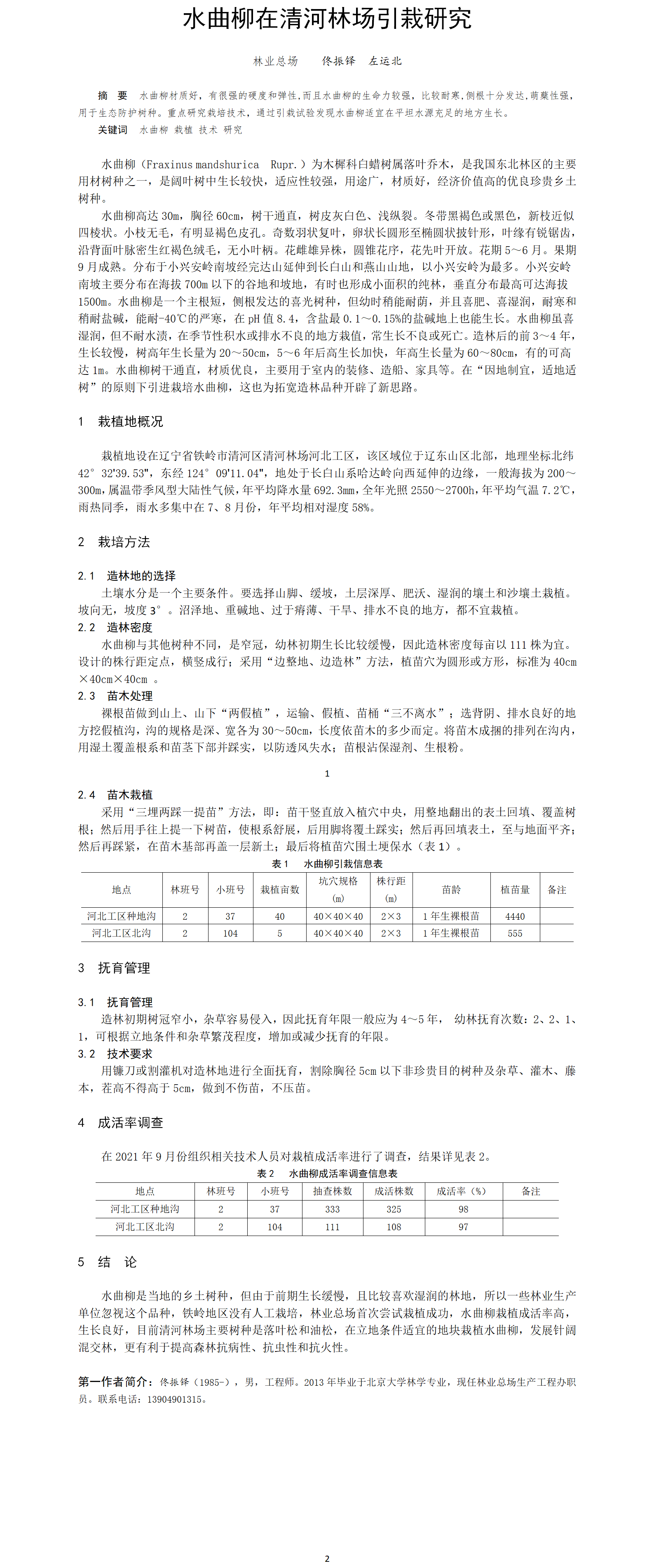 第55屆等級(jí)獎(jiǎng)?wù)撐?--水曲柳在清河林場(chǎng)引栽研究