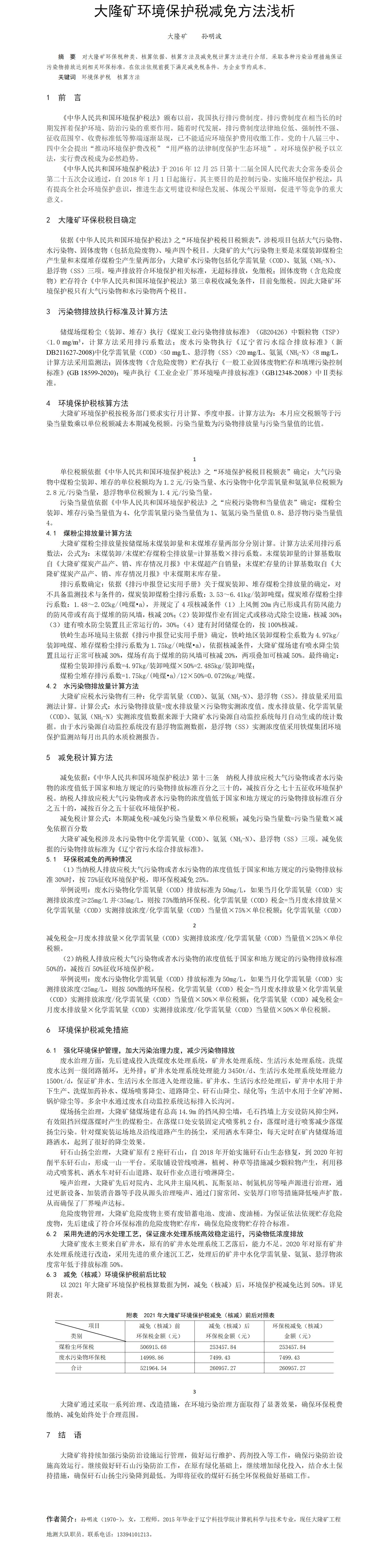 第55屆等級獎?wù)撐?--大隆礦環(huán)境保護稅減免方法淺析