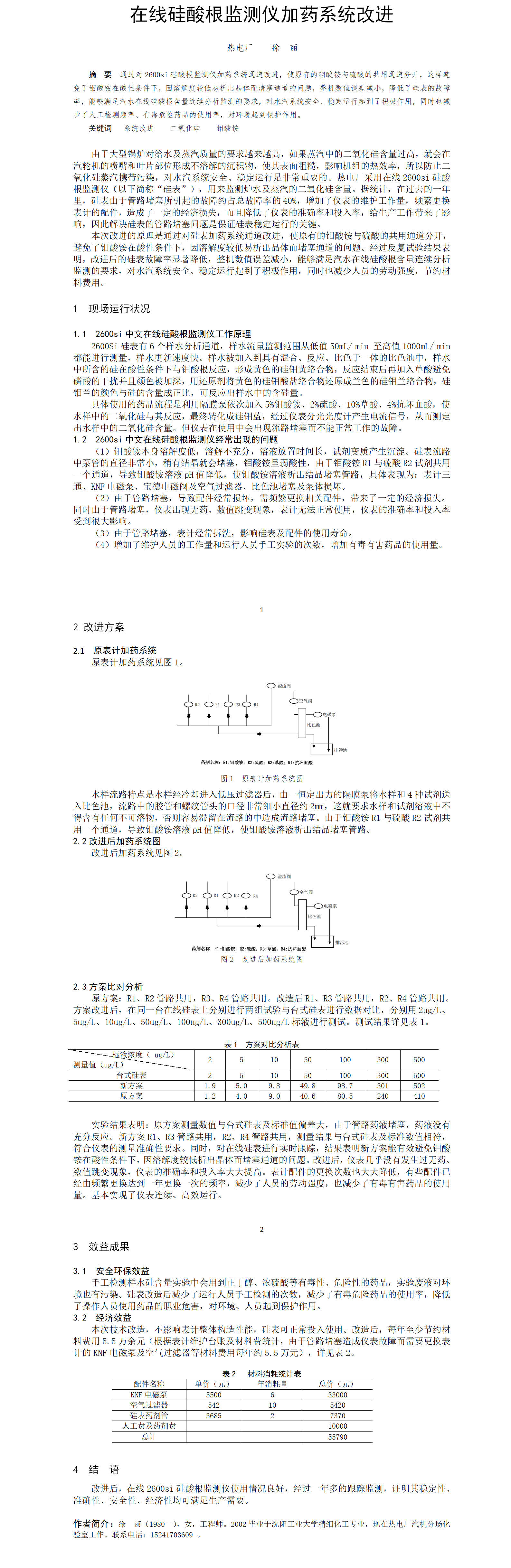 第55屆等級(jí)獎(jiǎng)?wù)撐?--在線硅酸根監(jiān)測(cè)儀加藥系統(tǒng)改進(jìn)
