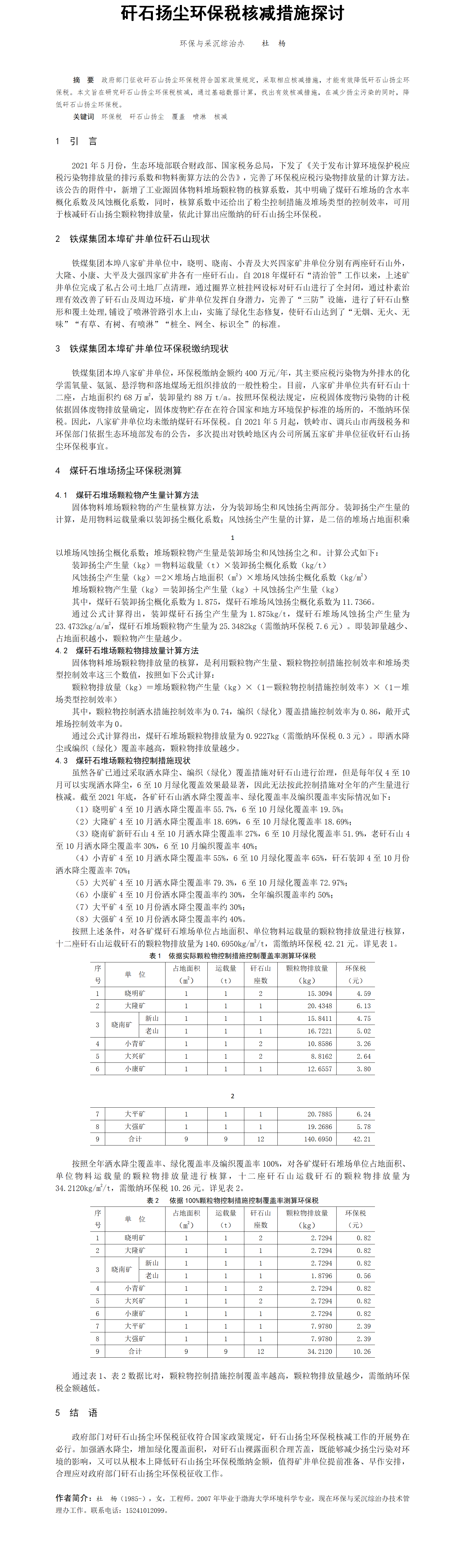 第55屆等級(jí)獎(jiǎng)?wù)撐?--矸石揚(yáng)塵環(huán)保稅核減措施探討