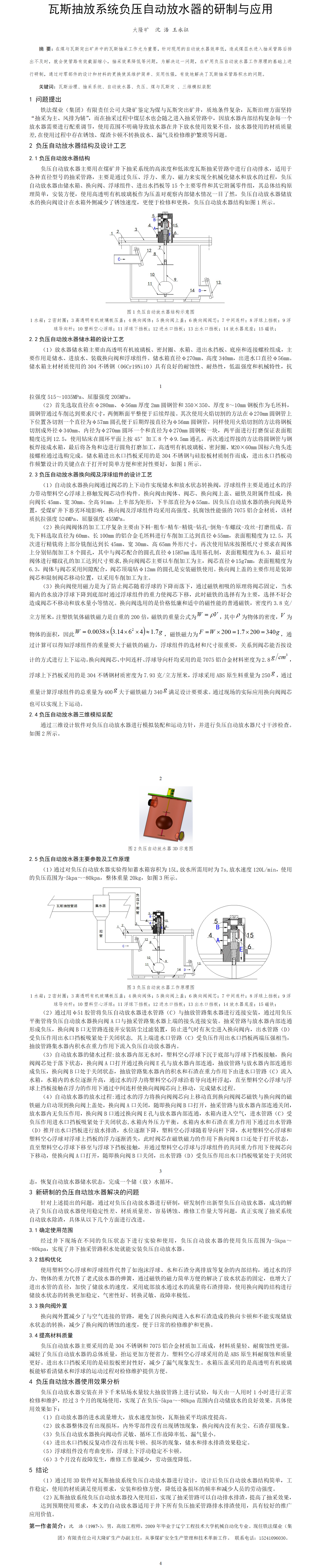 第56屆等級獎?wù)撐?--瓦斯抽放系統(tǒng)負(fù)壓自動放水器的研制與應(yīng)用