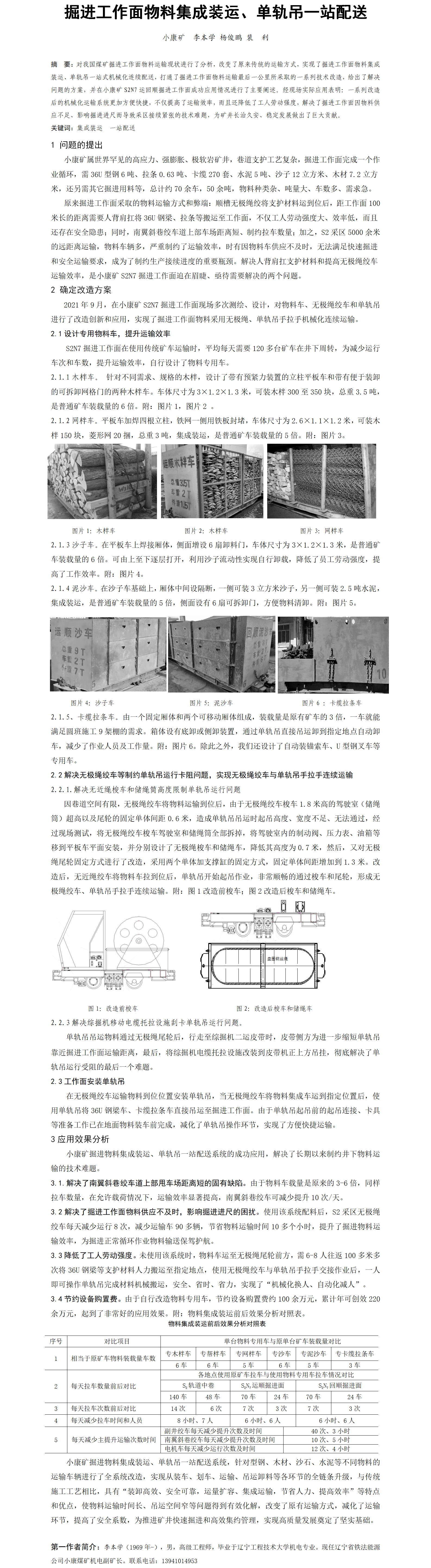 第56屆等級(jí)獎(jiǎng)?wù)撐?--掘進(jìn)工作面物料集成裝運(yùn)、單軌吊一站配送