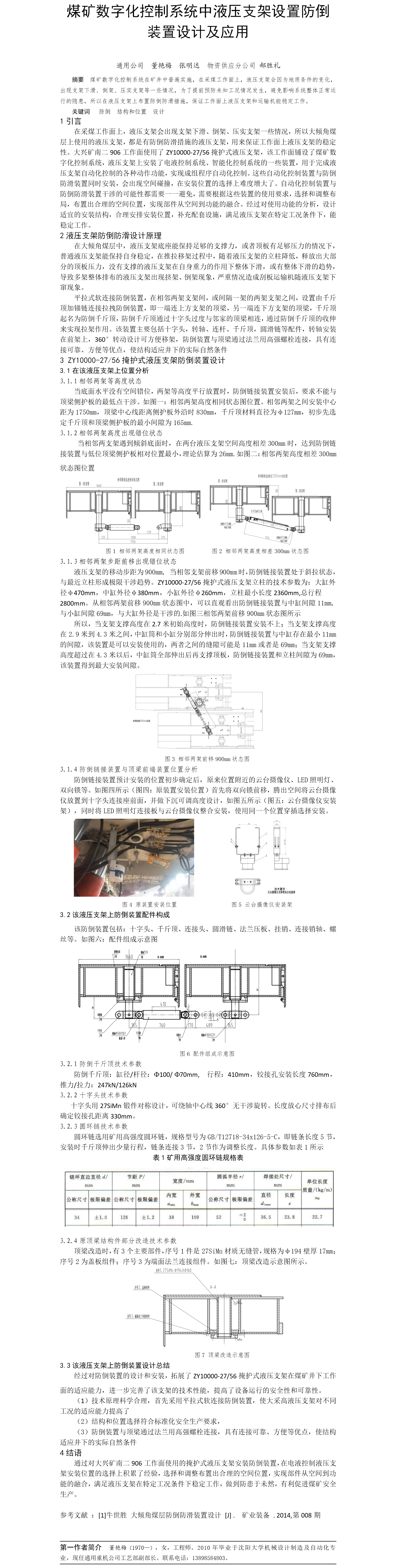 第56屆等級獎?wù)撐?-煤礦數(shù)字化控制系統(tǒng)中液壓支架防倒裝置設(shè)計及應(yīng)用