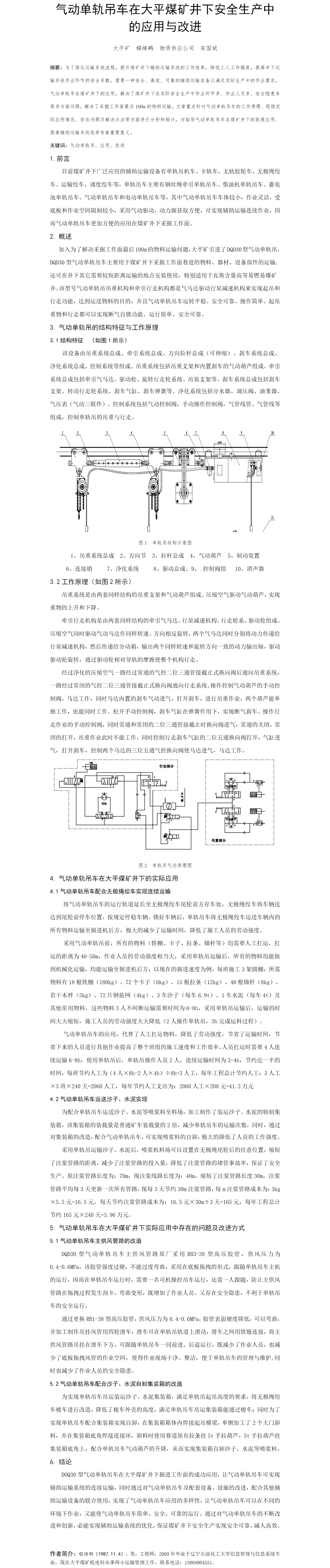第56屆等級(jí)獎(jiǎng)?wù)撐?--氣動(dòng)單軌吊車在大平煤礦井下安全生產(chǎn)中的應(yīng)用與改進(jìn)