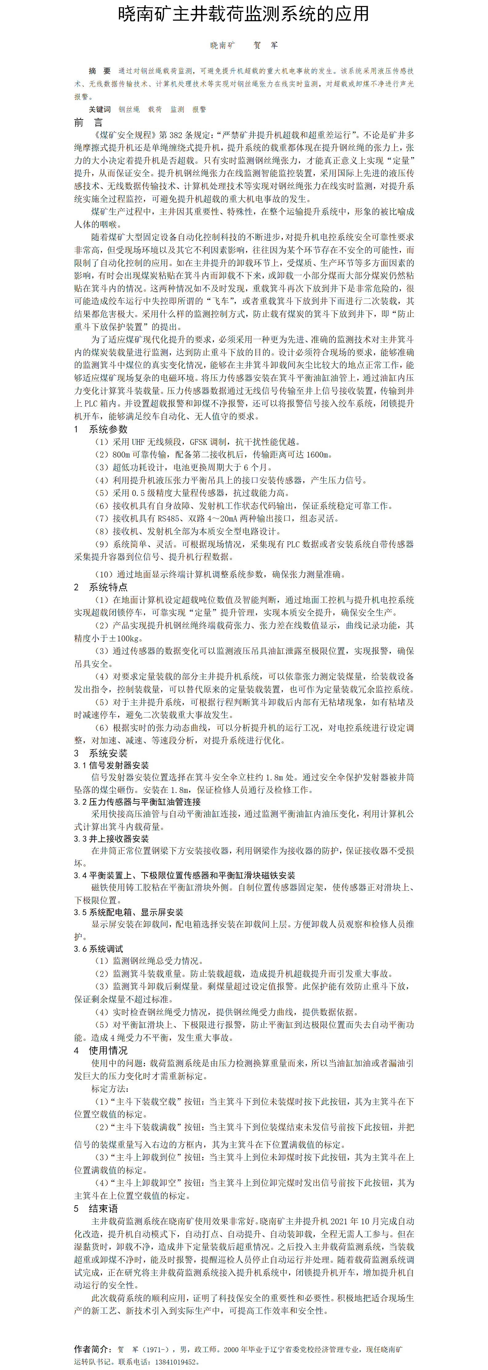 第56屆等級獎?wù)撐?--曉南礦主井載荷監(jiān)測系統(tǒng)的應(yīng)用