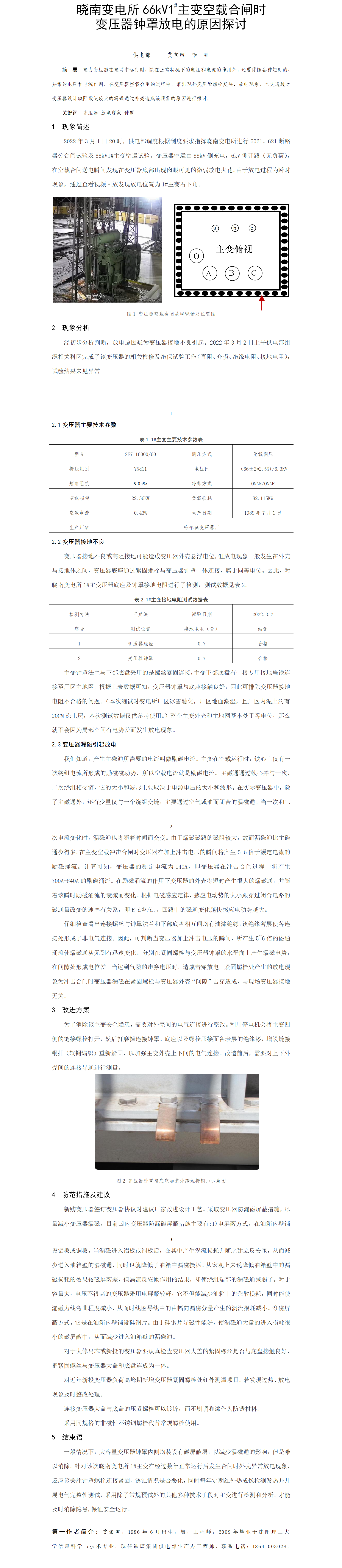 第56屆等級(jí)獎(jiǎng)?wù)撐?--曉南變電所66kV1#主變空載合閘時(shí)變壓器鐘罩放電的原因探討