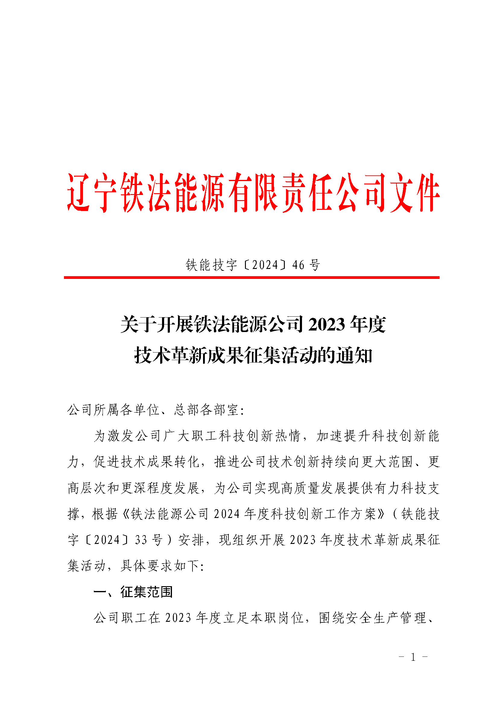 關(guān)于開展鐵法能源公司2023年度技術(shù)革新成果征集活動(dòng)的通知
