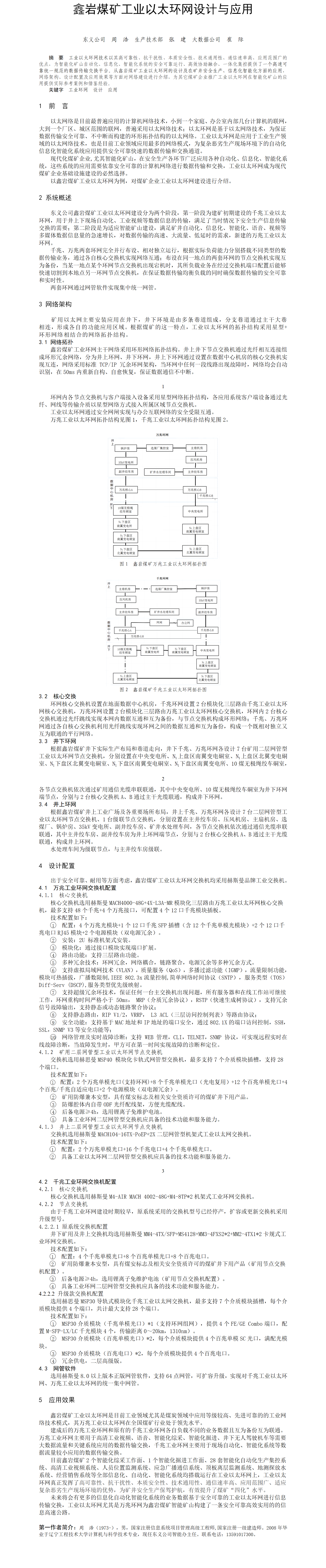 第56屆等級(jí)獎(jiǎng)?wù)撐?--鑫巖煤礦工業(yè)以太環(huán)網(wǎng)設(shè)計(jì)與應(yīng)用