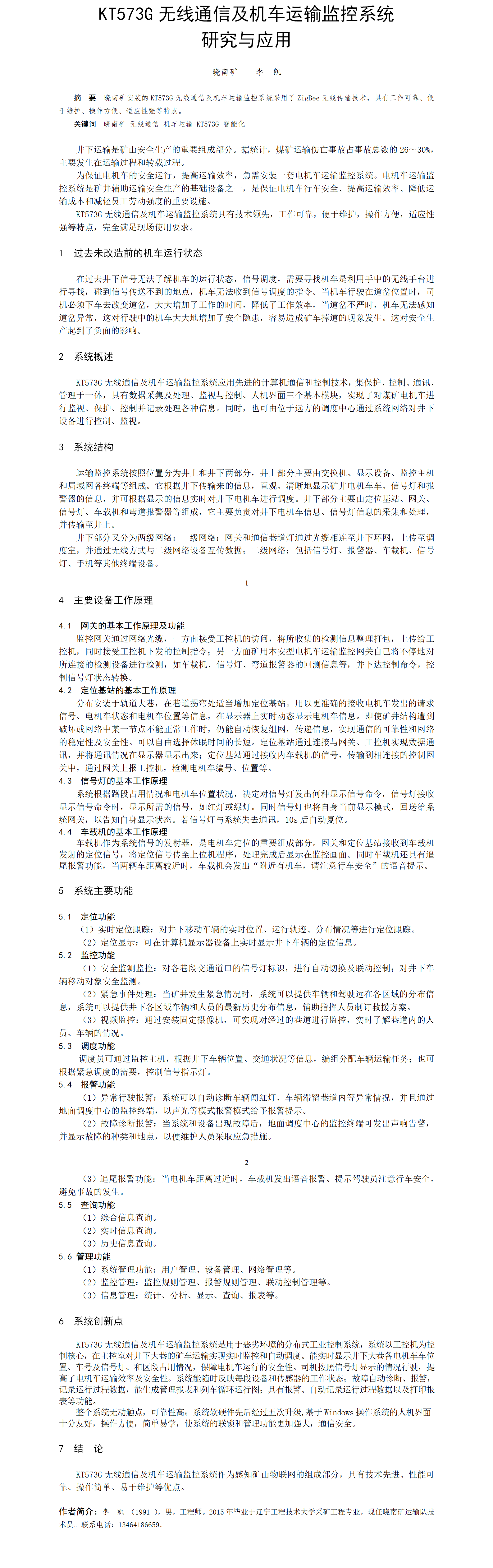 第56屆等級(jí)獎(jiǎng)?wù)撐?--KT573G無(wú)線通信及機(jī)車運(yùn)輸監(jiān)控系統(tǒng)研究與應(yīng)用