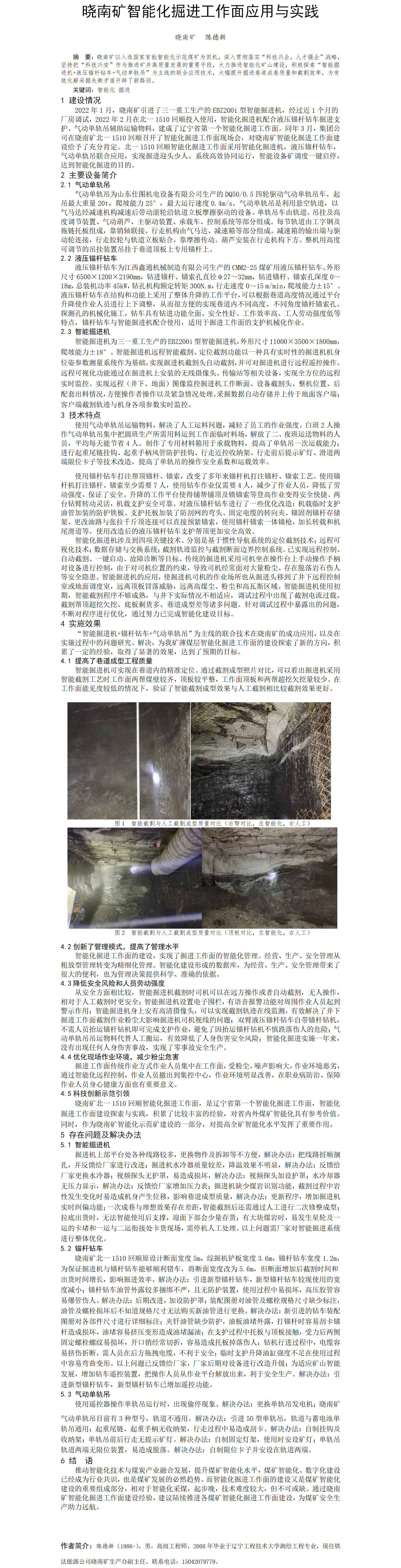 第57屆等級獎?wù)撐?--曉南礦智能化掘進工作面應(yīng)用與實踐