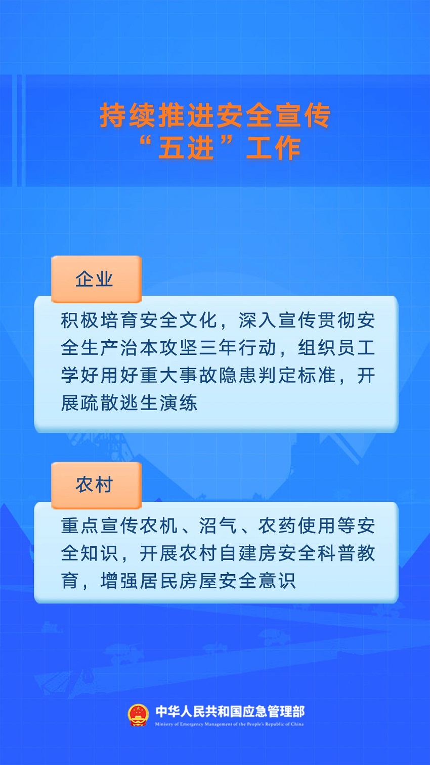 今年6月是第23個(gè)全國(guó)“安全生產(chǎn)月” 6月16日為全國(guó)“安全宣傳咨詢?nèi)铡?近期 國(guó)務(wù)院安委會(huì)辦公室、應(yīng)急管理部印發(fā)通知 明確今年全國(guó)“安全生產(chǎn)月”活動(dòng)主題為 “人人講安全、個(gè)個(gè)會(huì)應(yīng)急——暢通生命通道” 對(duì)開(kāi)展好2024年全國(guó)“安全生產(chǎn)月”活動(dòng) 作出安排部署 有哪些活動(dòng)安排? 一起了解!