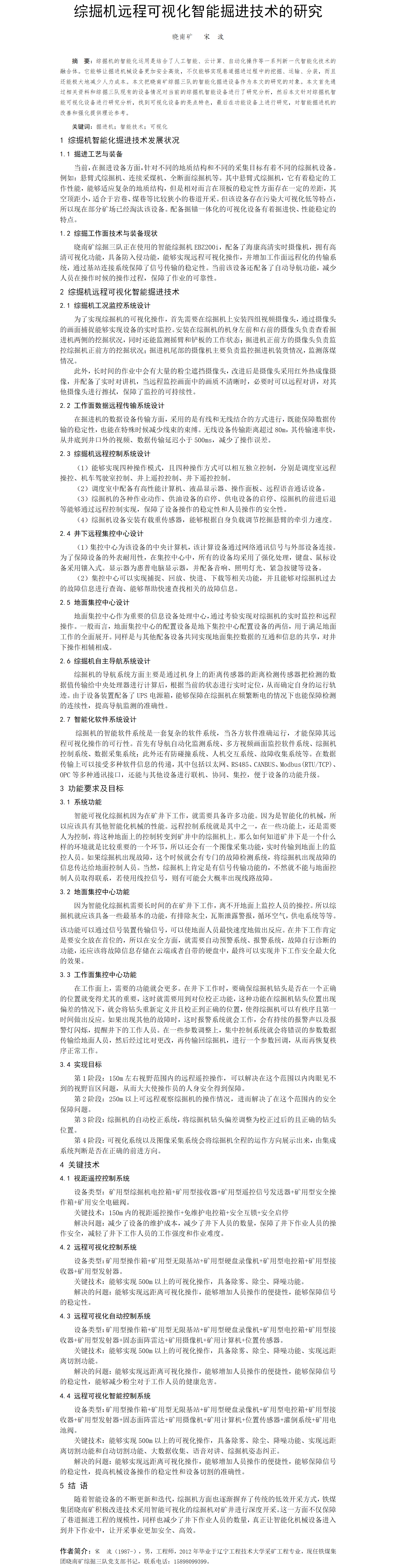 第57屆等級獎論文---綜掘機遠程可視化智能掘進技術的研究