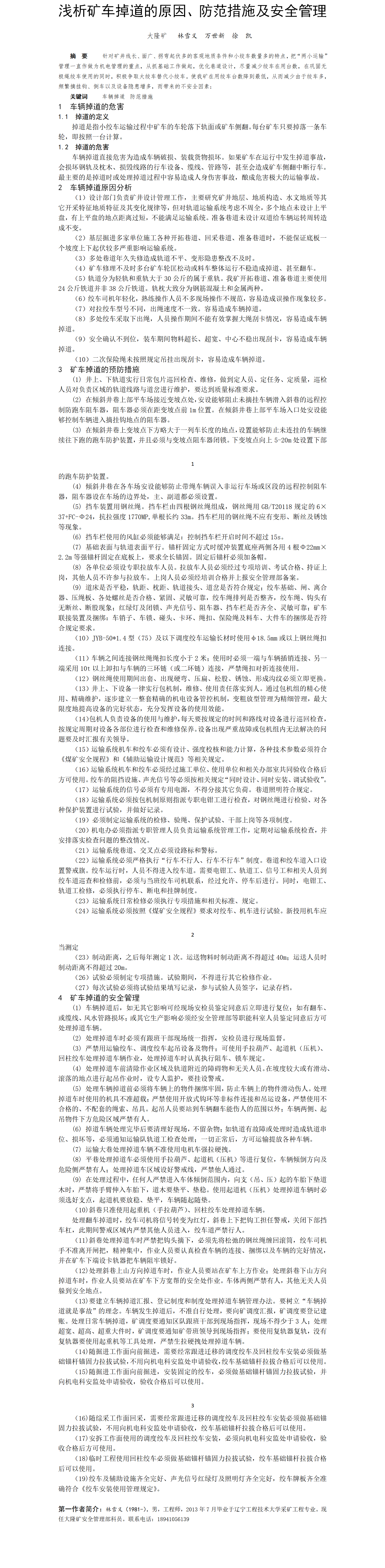 第58屆等級(jí)獎(jiǎng)?wù)撐?--淺析礦車掉道的原因、防范措施及安全管理