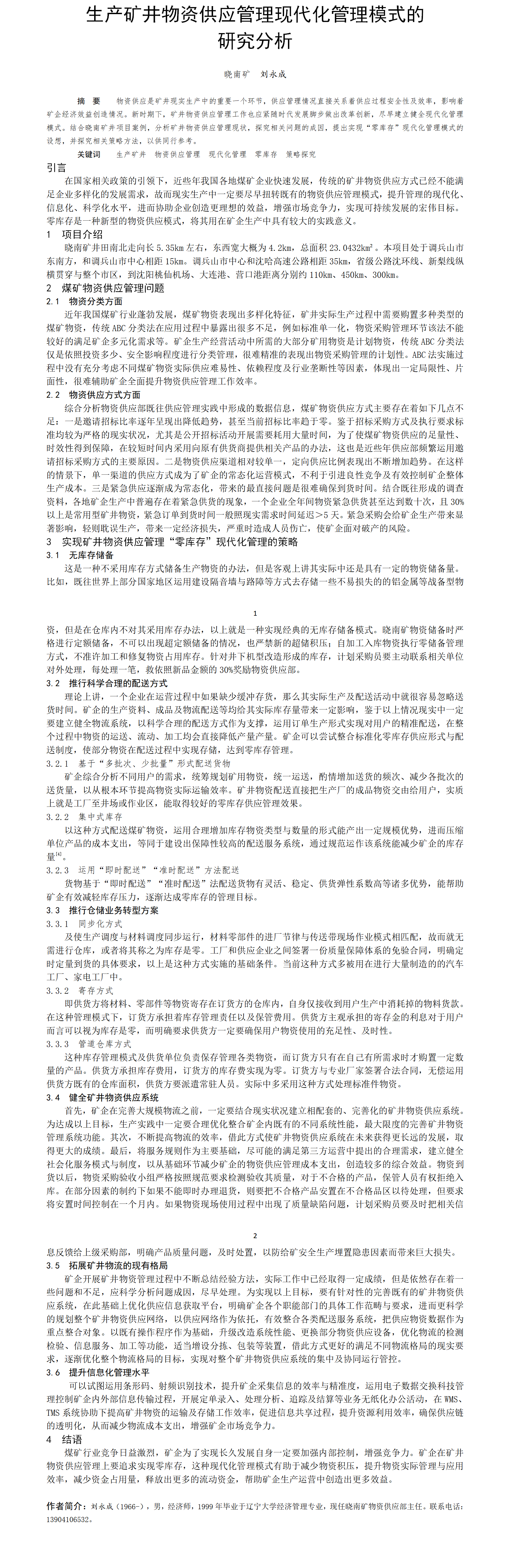 第58屆等級獎?wù)撐?--生產(chǎn)礦井物資供應(yīng)管理現(xiàn)代化管理模式的研究分析