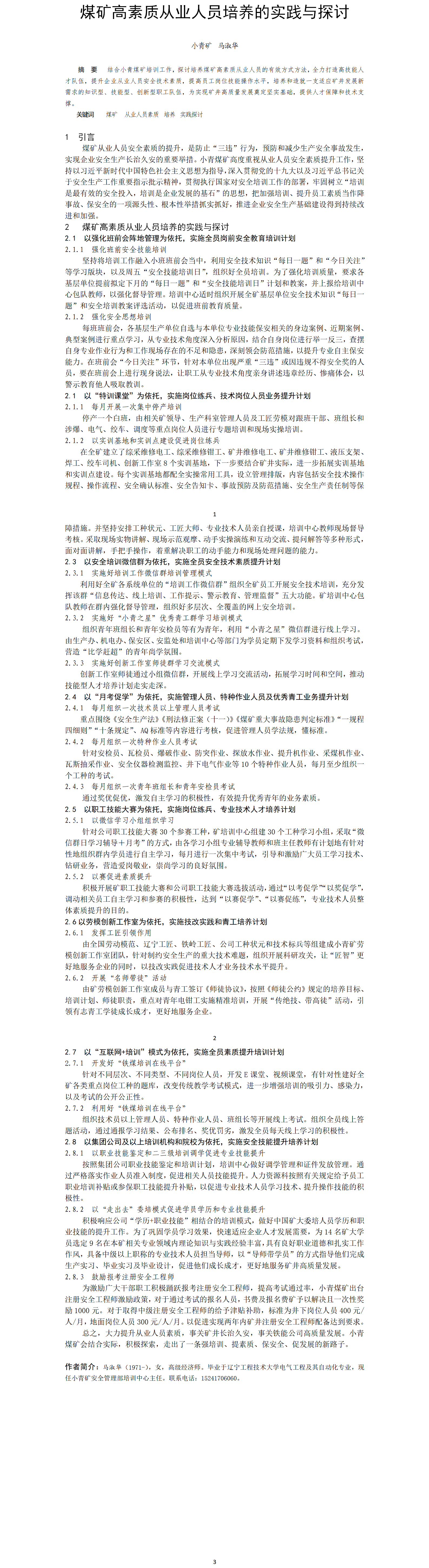 第58屆等級獎?wù)撐?--煤礦高素質(zhì)從業(yè)人員培養(yǎng)的實踐與探討