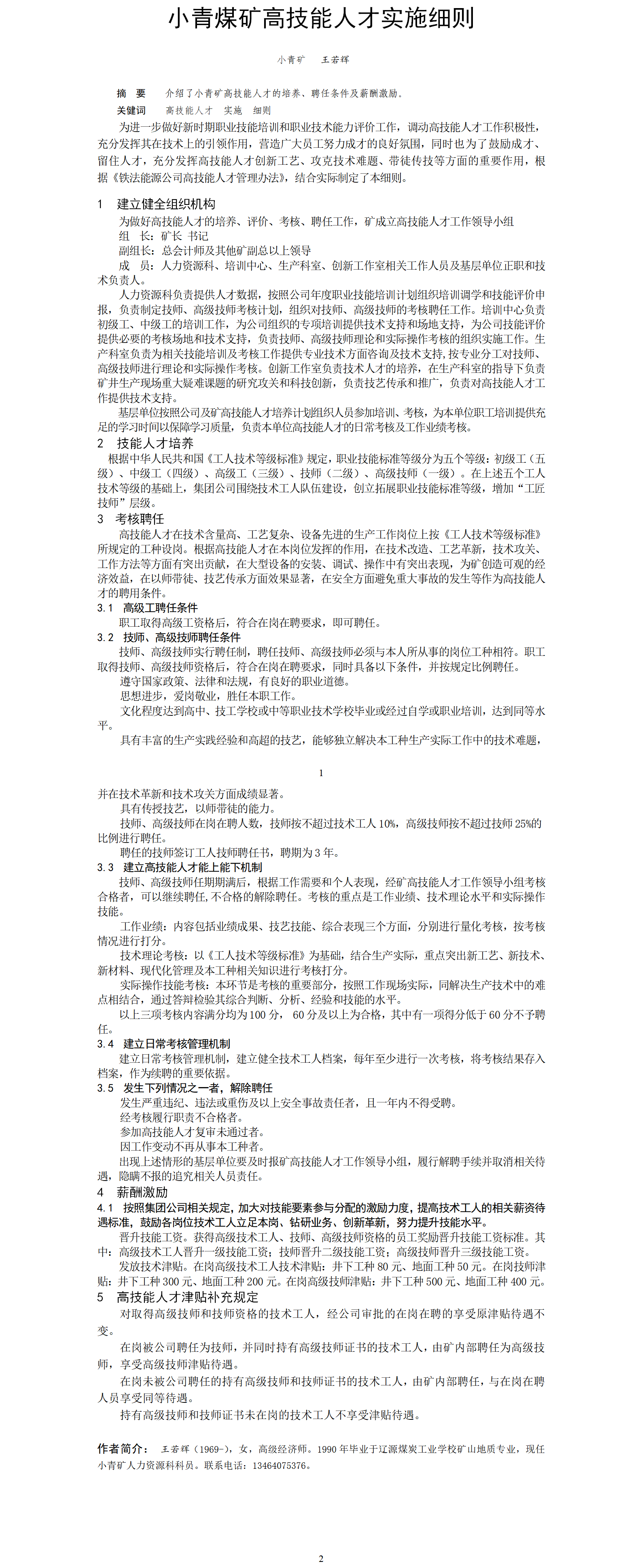 第58屆等級(jí)獎(jiǎng)?wù)撐?--小青煤礦高技能人才實(shí)施細(xì)則