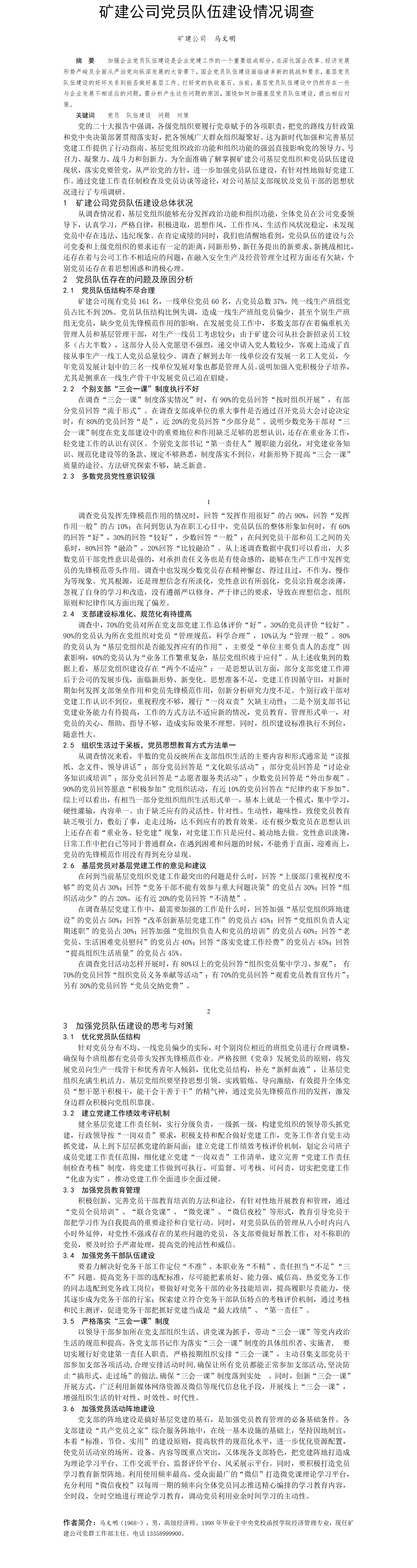 第58屆等級獎論文---礦建公司黨員隊伍建設情況調(diào)查