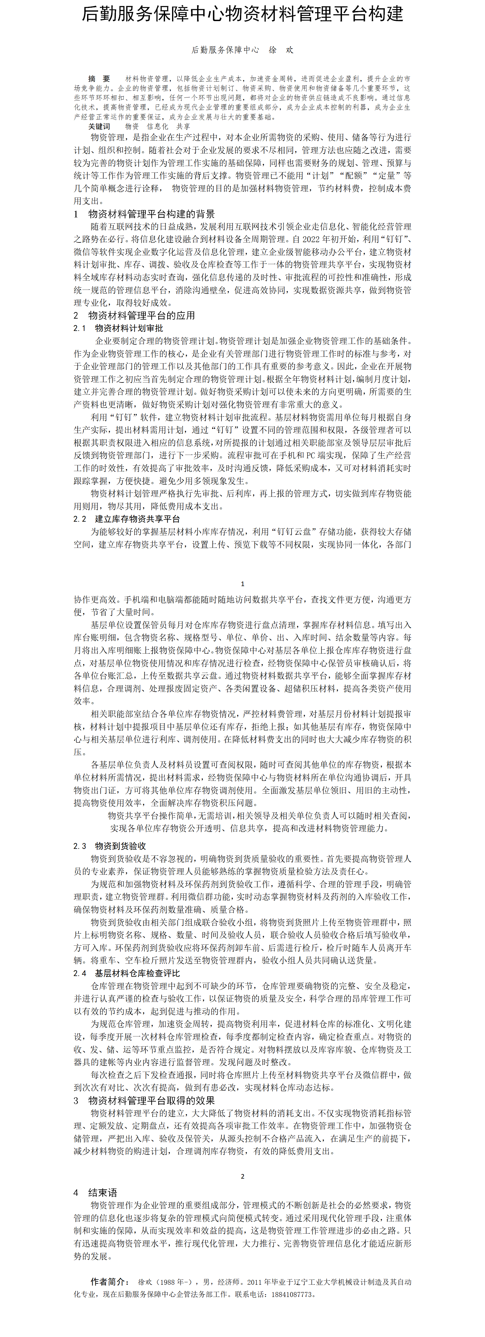 第58屆等級(jí)獎(jiǎng)?wù)撐?--后勤服務(wù)保障中心物資材料管理平臺(tái)構(gòu)建