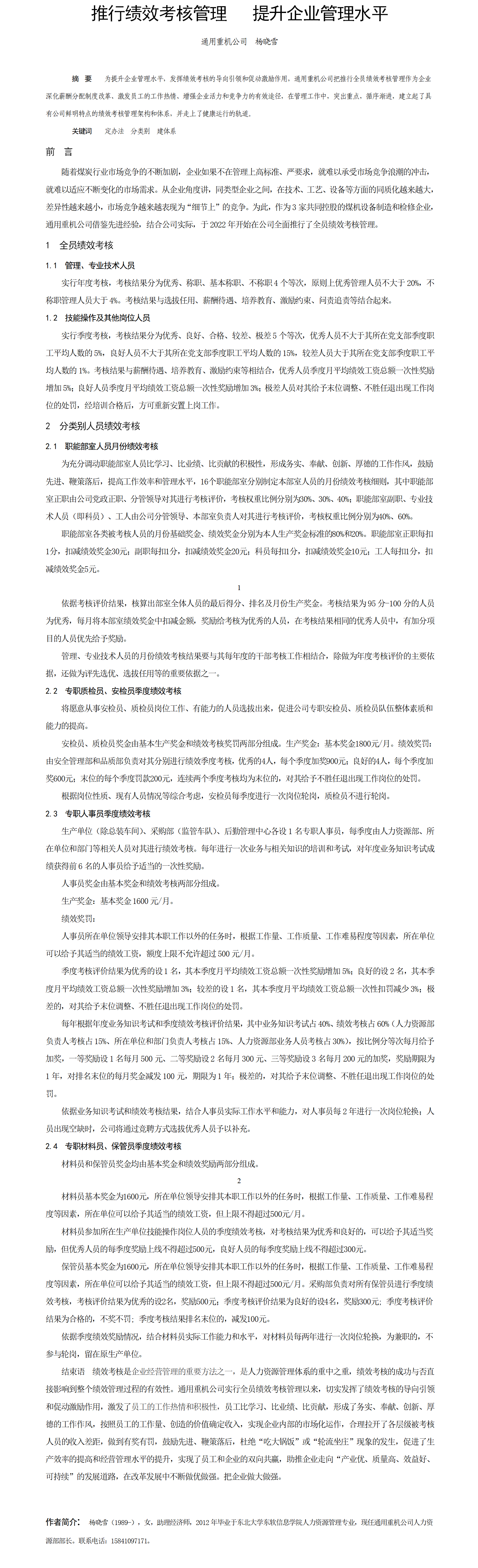 第58屆等級(jí)獎(jiǎng)?wù)撐?--推行績(jī)效考核管理 提升企業(yè)管理水平