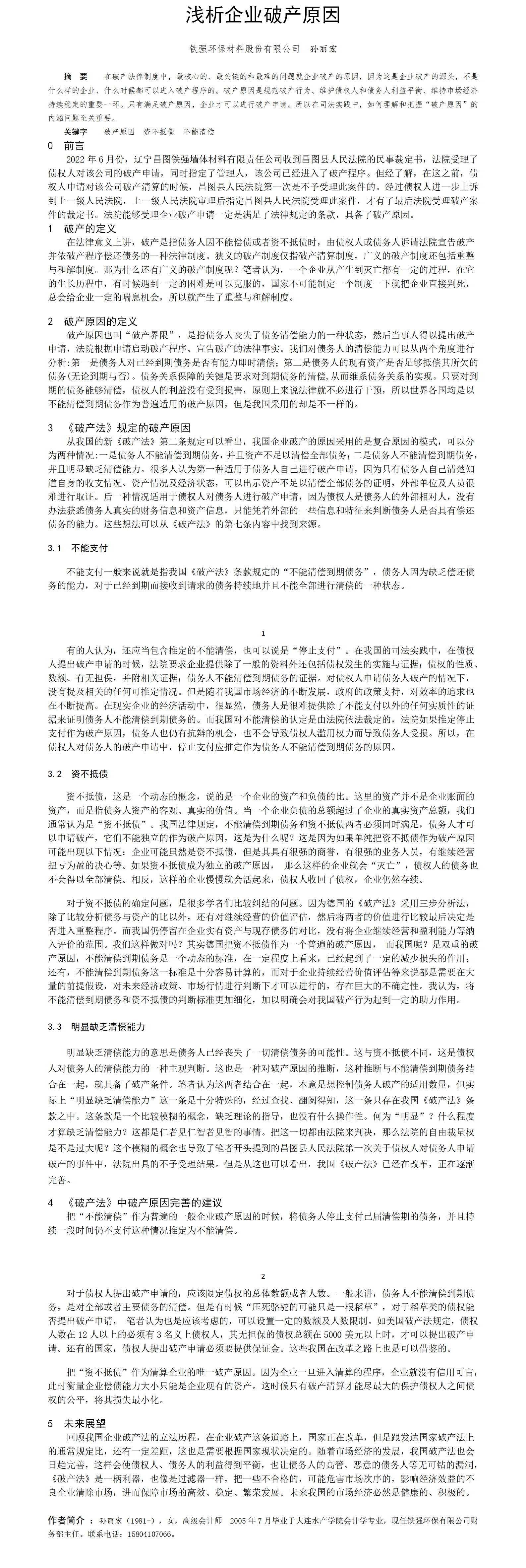 第58屆等級獎論文---淺析企業(yè)破產原因