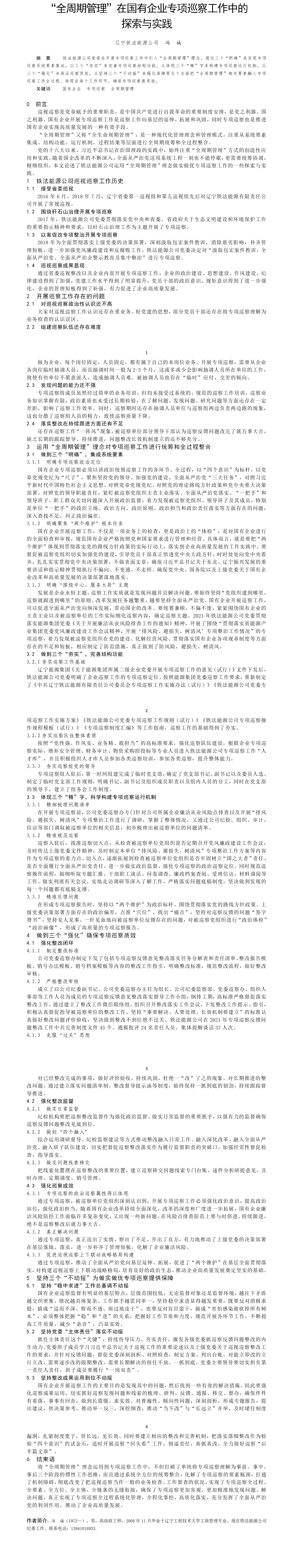 第58屆等級(jí)獎(jiǎng)?wù)撐?--“全周期管理”在國(guó)有企業(yè)專項(xiàng)巡察工作中的探索與實(shí)踐