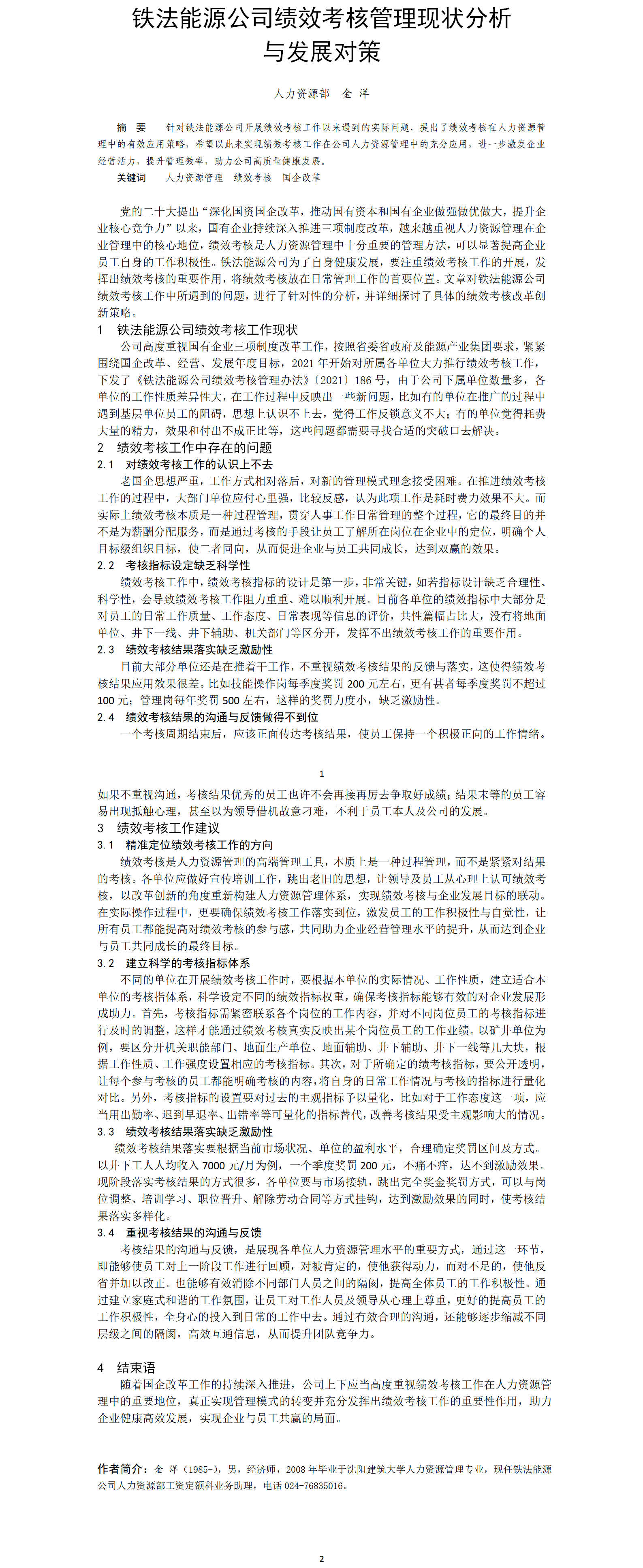第58屆等級獎論文--鐵法能源公司績效考核管理現(xiàn)狀分析與發(fā)展對策
